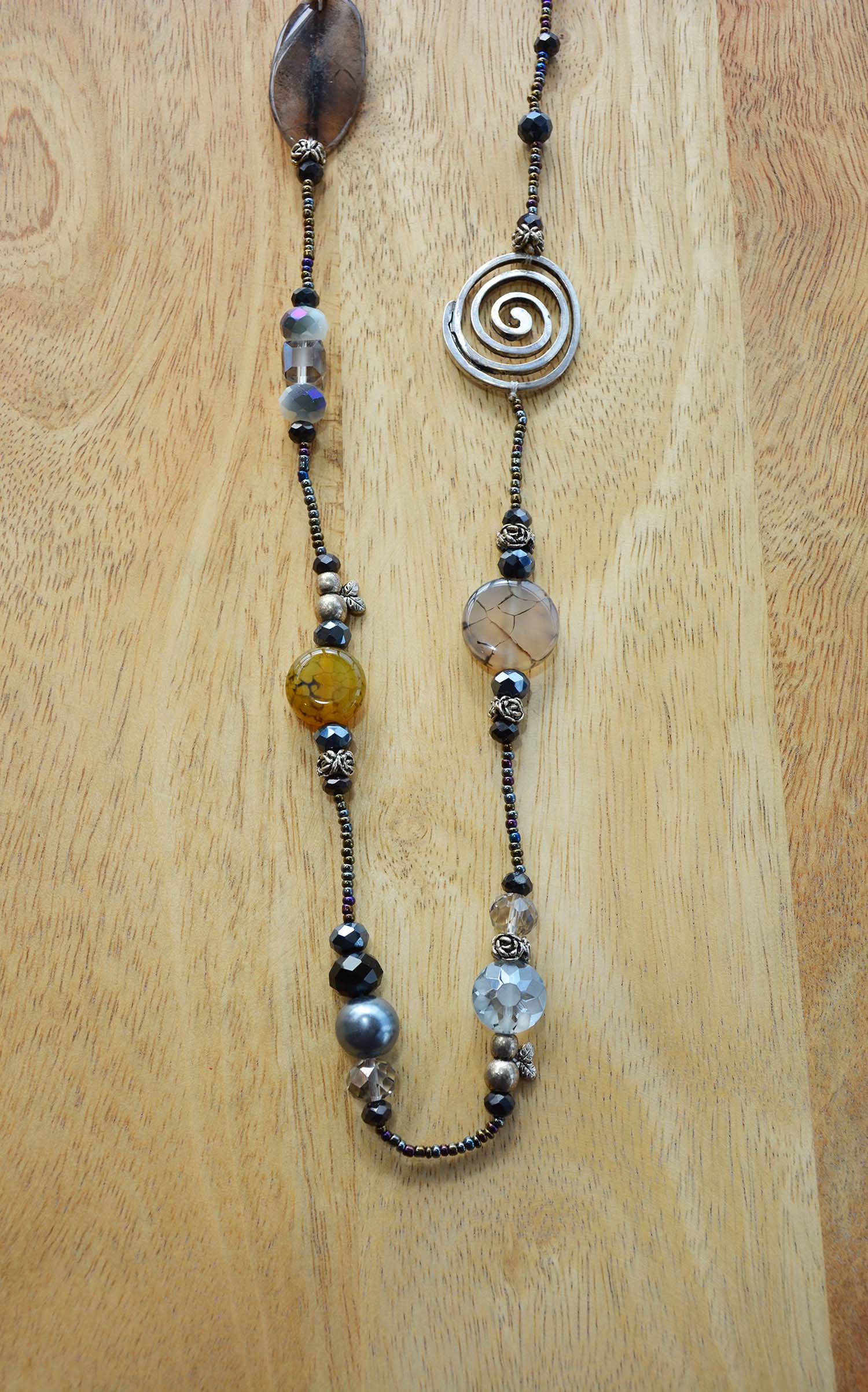 • שרשרת יפהפיה המשלבת אבנים ייחודיות וחרוזים