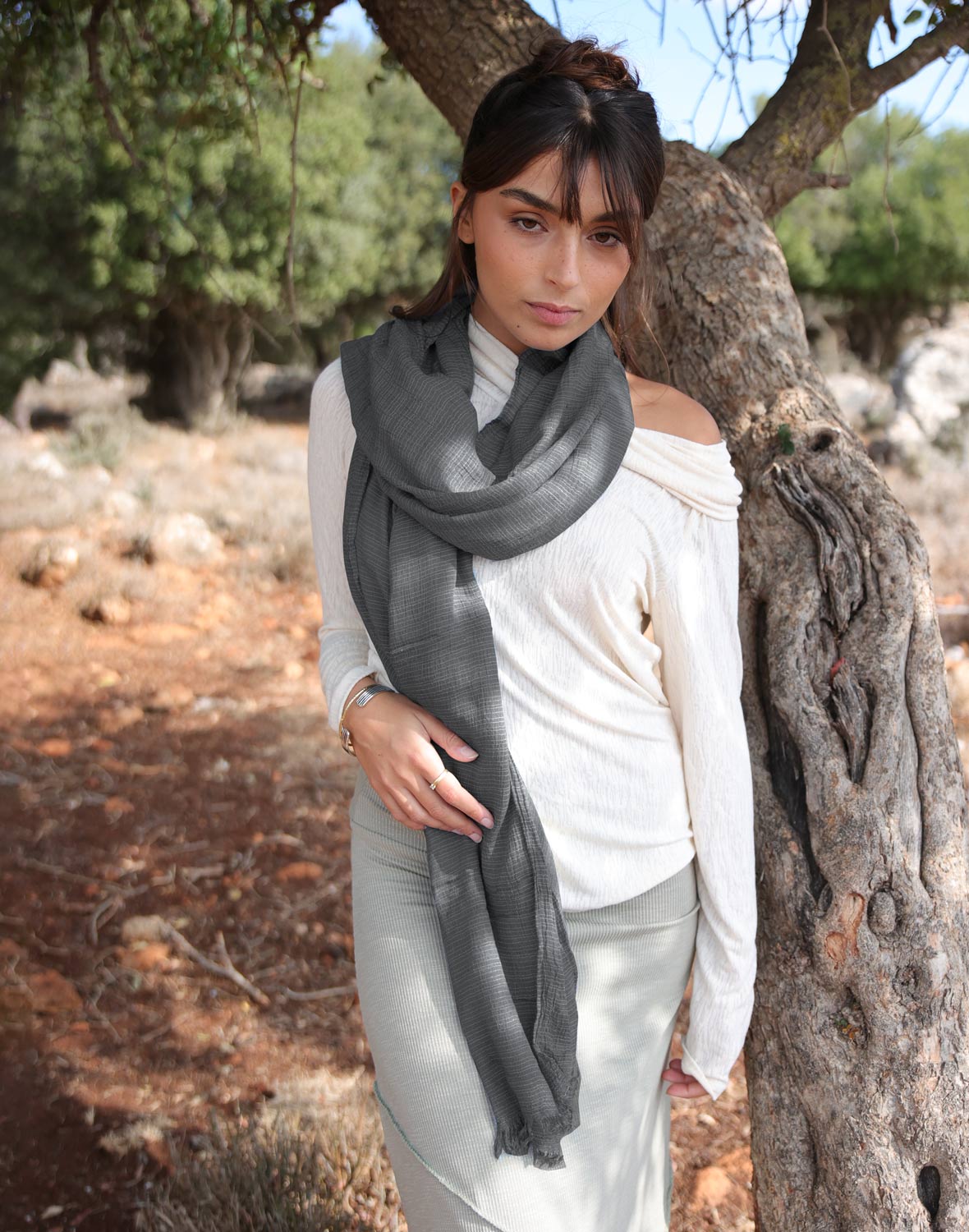 - צעיף מקומט פסים